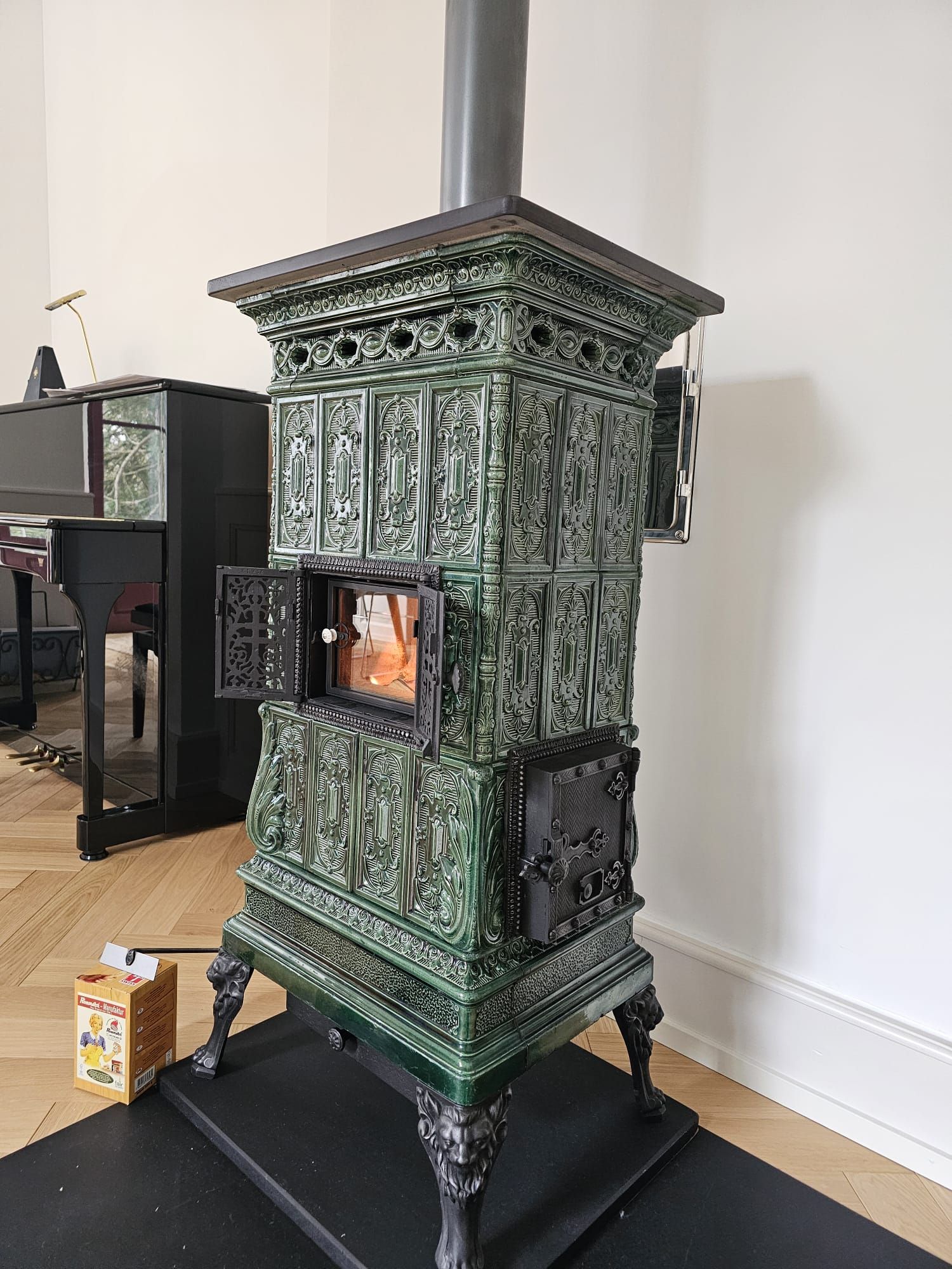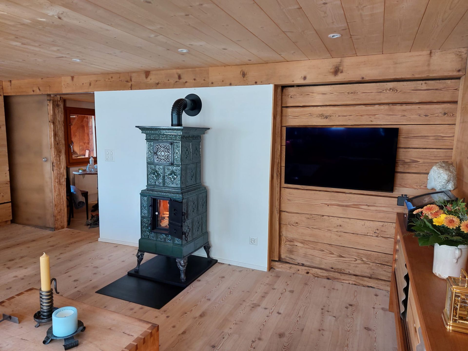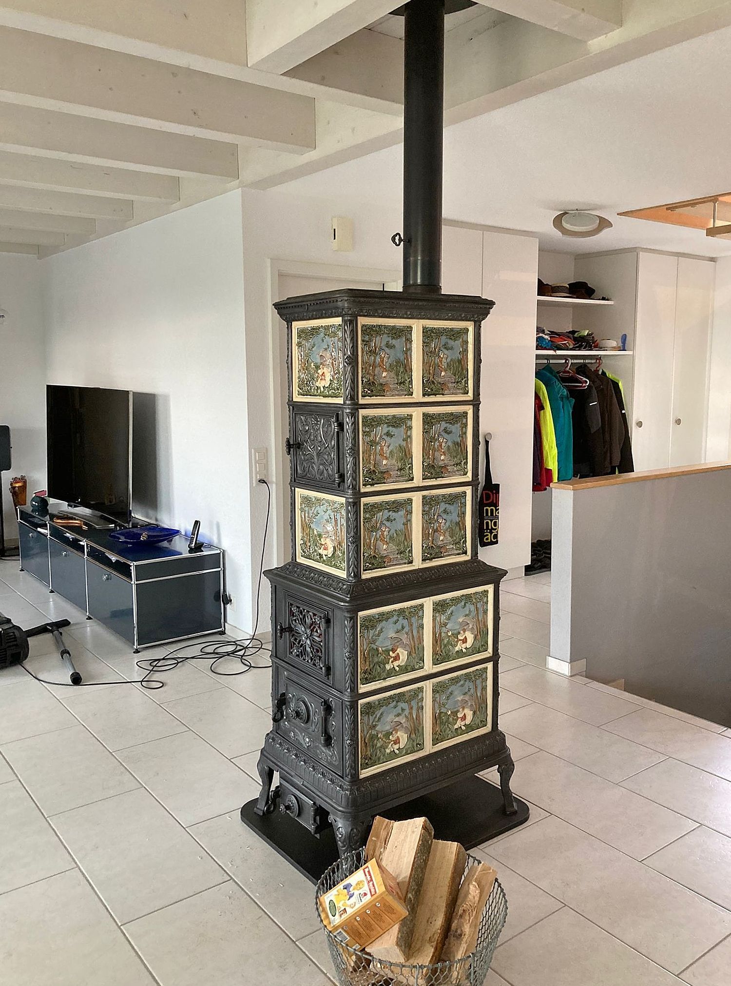 Kachelöfen sind echte Hingucker und erinnern an Grossmutters Stube. Sie können aber viel mehr. Einerseits wecken sie Feriengefühleund behagliche Stimmung, man fühlt sich in die Skiferien versetzt. Andererseits sorgen diese Heizkörper mit herausragenden Wärmeeigenschaften trotz geringem Holzverbrauch für ein wohliges Ambiente. Einmal angefeuert, bleibt der Raum ein Tag lang warm. Da der Ofen nicht offen ist, wird im Gegensatz zum Cheminée die Asche nur alle paar Monate entfernt. Dies weil in den schlanken hohen Feuerräumenwie bei antiken Perler Öfen mit den neuzeitlich- berechneten Lufteindüsungen eine sehr hohe Verbrennungs-Temperatur erreicht wird. Dabei verglüht alles an Holzkohle zu feinster weisser Puderasche, welche keinen Abfall ergibt. Die Optimierung und zeitgemässe Anpassung an neueste Feuerungstechniken und Vorschriften sind bei uns selbstverständlich und Qualitätsmerkmal. Ihr Ofen verlässt unser Atelier zertifiziert und mit 2 Jahren Vollgarantie.